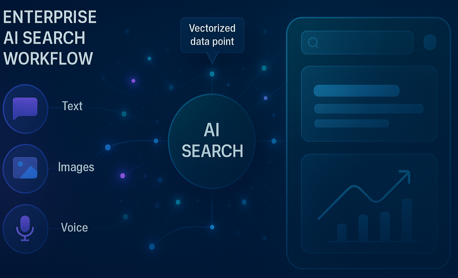 Today's AI search engines for enterprises go beyond traditional keyword matching, incorporating vectorization to enable precise, context-aware results. By converting text, images, and other data into high-dimensional vectors, these engines measure semantic similarity, allowing users to find relevant information even without exact matches. Semantic search, powered by natural language processing (NLP) and machine learning, interprets the meaning behind queries, delivering results that align with user intent.
